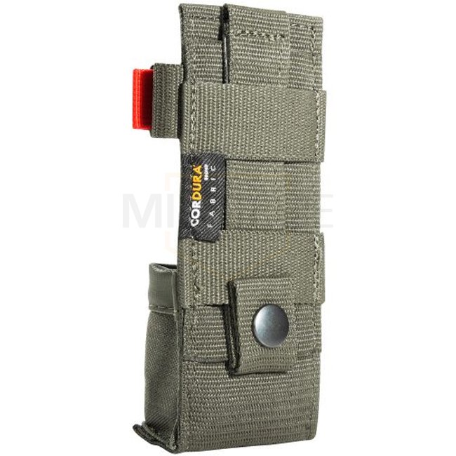 Fixation for the CAT-Tourniquet or similar equipment. Made of CORDURA® and material with IRR treatment. Both the European CORDURA® materials as well as web-bing, hook-and-loop fasteners and buckles meet the high German Bundeswehr standards TL 8305-0278 and TL 8305-0281 with regard to the IRR camouflage effect (IRR 650 – 1250nm / 10 – 42%).