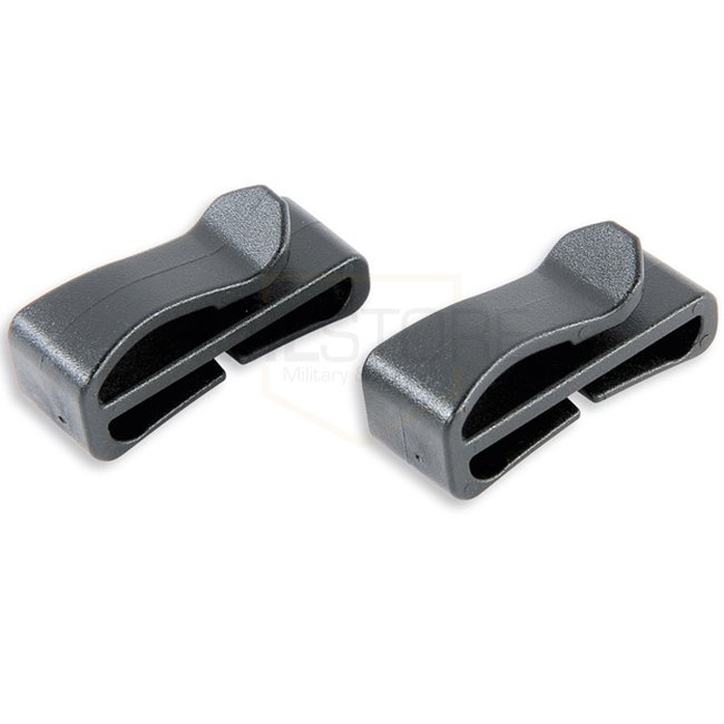 The Webbing Keeper allows the webbing to be neatly attached to the backpack. It has an open bar for threading. Suitable for webbing with a width of 20 mm. Available in pairs.