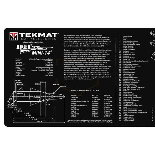 TekMat Cleaning & Repair Mat for Ruger Mini 14 - 3mm thick mat perfect for weapon maintenance, display, work pad, or desktop use. Measures 90 x 30cm.