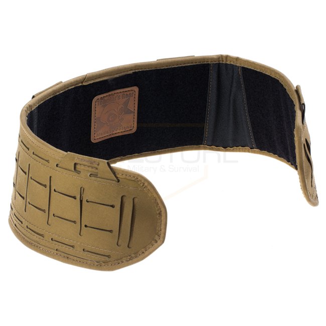 The PT4 GENIII L is a low-profile battle belt designed to be used in conjunction with any rigger or duty belt not wider than 50 mm. The outer surface is made of durable laminate and is MOLLE-compatible, providing modularity for attaching additional pouches and gear. The belt includes a comfort pad with velour fabric, enhancing user comfort and stability.