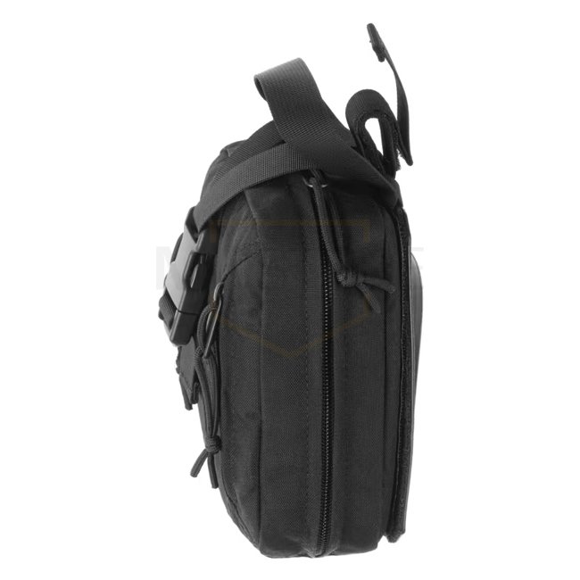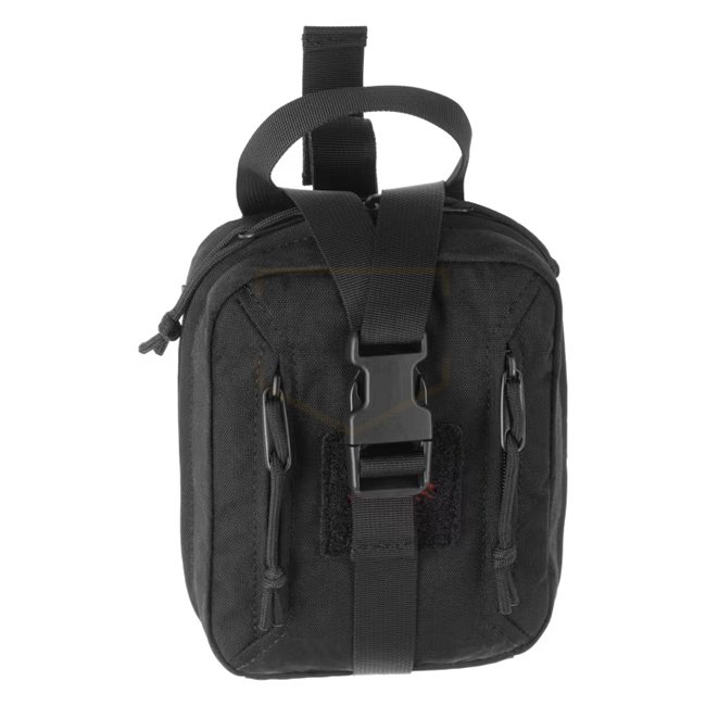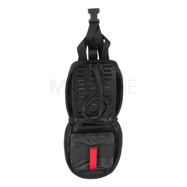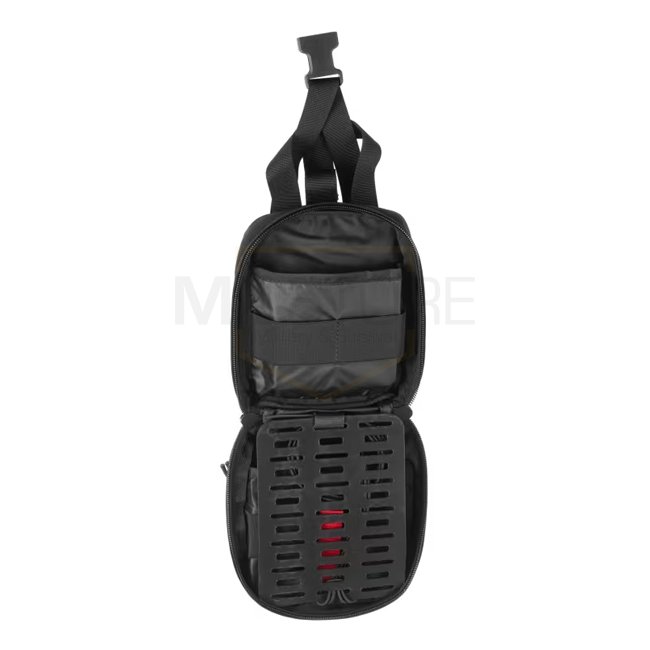 The AZ2 is a rip-away first aid pouch designed for quick access and secure attachment. The anchor panel attaches to load-carrying equipment using the MOLLE-compatible system, while the pouch itself is secured with Velcro and an additional strap with a fastex buckle. This setup ensures stable attachment and one-handed removal in emergencies.