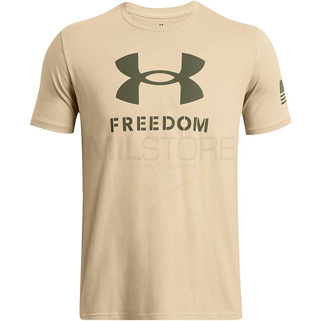 The UA Freedom Logo Tee offers comfort and bold styling. The striking UA logo print over “Freedom” makes a clear statement.