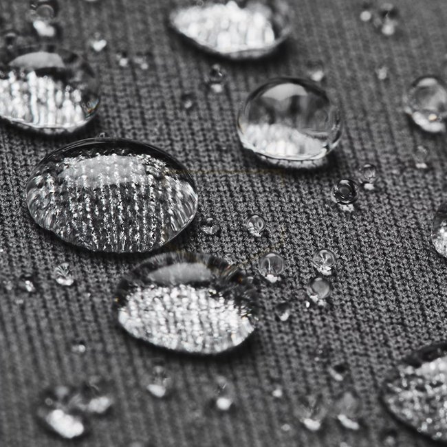 Main body contains ≥90% recycled polyester; some variants include 98% polyester/2% elastane.