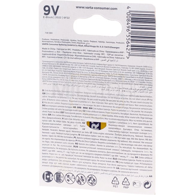 Varta 9V Block Superlife - long-lasting and reliable power source for your high-drain devices. Perfect for smoke detectors, toys, and other gadgets. Ensure your devices stay powered up with Varta's trusted performance.