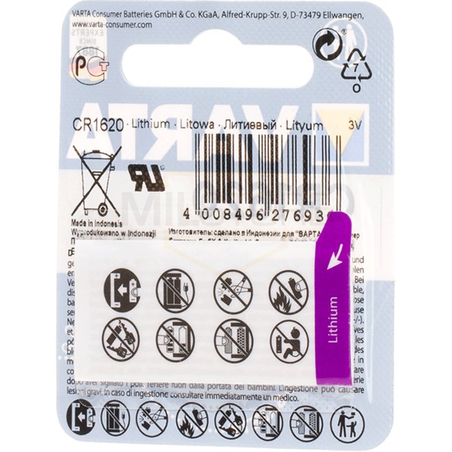 Varta CR1620 - long-lasting coin cell battery ideal for small electronic devices.