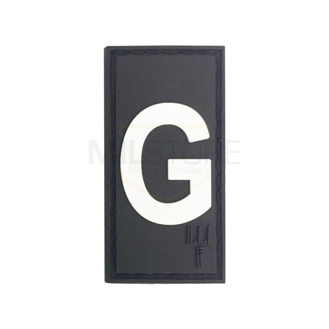Fourche Lettre G Écusson - Noir. Dos velcro. Dimensions : 50 x 25 mm.