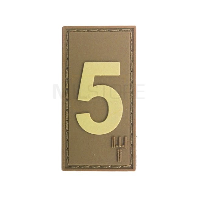 Fourche Numéro 5 Patch - Couleur tan. Dos velcro. Dimensions : 50 x 25 mm.