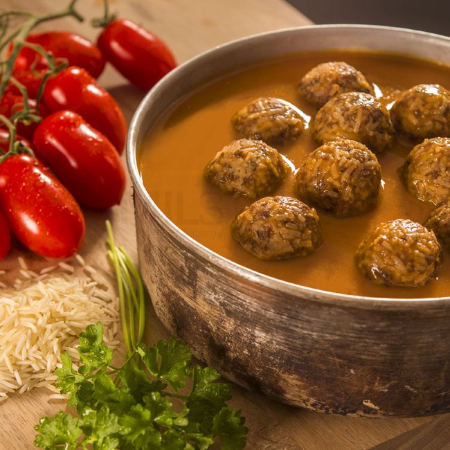 Menu d'Aventure Boulettes de Viande avec Riz Basmati & Sauce Tomate - REPAS PRÊTS À MANGER, REPAS STÉRILISÉS. Grand confort, ingrédients de qualité. Boulettes de viande à base de bœuf, riz basmati, persil, sel, poivre. Sauce tomate avec légumes racines et
