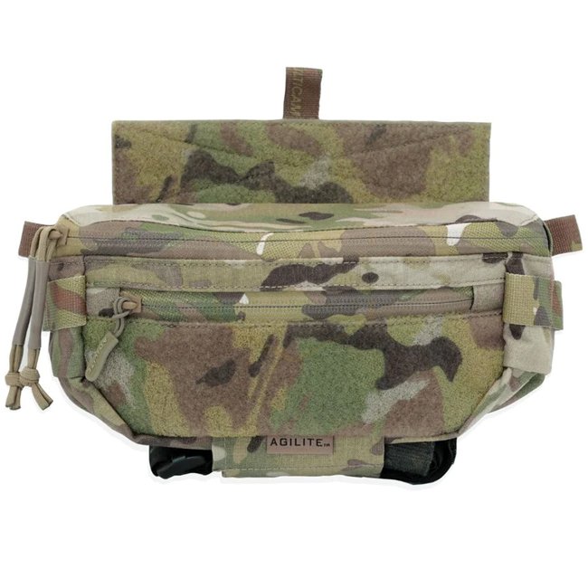 Pochette de suspension Agilite Six Pack - Multicam : Rangement supplémentaire sous votre porte-plaque, design ergonomique, multiples méthodes de fixation, accès rapide aux garrots, se transforme en sac banane, trou de drainage. CORDURA® 500D, 47 x 13 x 3c