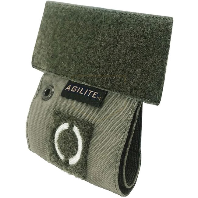 Porte-garrot Agilite - Vert Ranger : Porte élastique pour un accès facile, se fixe sur un porte-plaque ou une ceinture de combat, dispose d'une zone en velcro découpé au laser pour une identification rapide. Matériau : CORDURA® 500D, Dimensions : 12,4 x 1