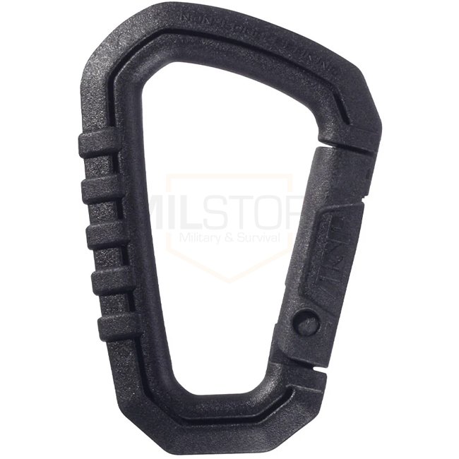 Carabiner en polymère ASP - Noir. Hauteur : 90 mm. Supporte un poids de 125 kg. Non destiné à un usage en escalade ou en sauvetage !