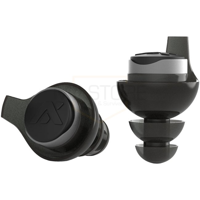 Axil XP Defender - Fumée : bouchons d'oreilles innovants avec un système de filtration en maille dynamique pour un son clair et naturel, offrant 18DB SNR en position fermée et 10DB SNR en position ouverte. Comprend un interrupteur à bascule, des embouts d