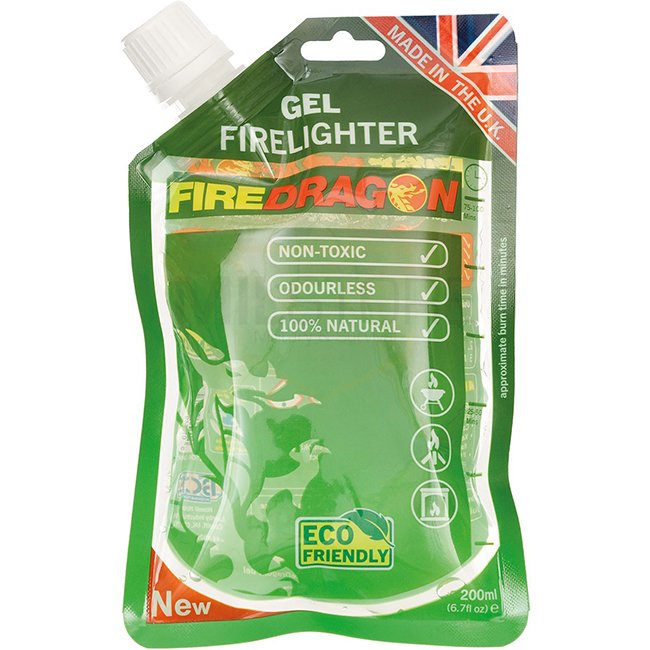 BCB Fire Dragon Gel Allume-feu 200 ml - Gel d'allume-feu non toxique, sans odeur et écologique pour une combustion propre et peu soot. S'allume rapidement et facilement, brûle dans toutes les conditions météorologiques pendant environ 75-100 minutes. Fabr
