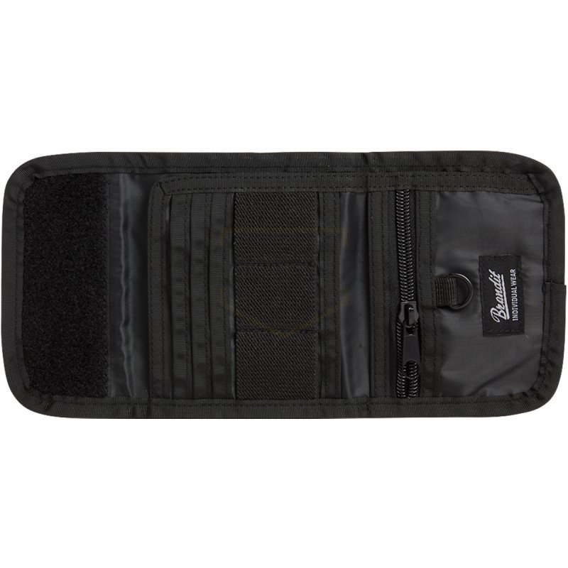 Portefeuille Brandit Cinq - Noir : Portefeuille en polyester durable avec compartiment pour pièces, emplacements pour cartes et plusieurs options de rangement. Idéal pour organiser vos essentiels.