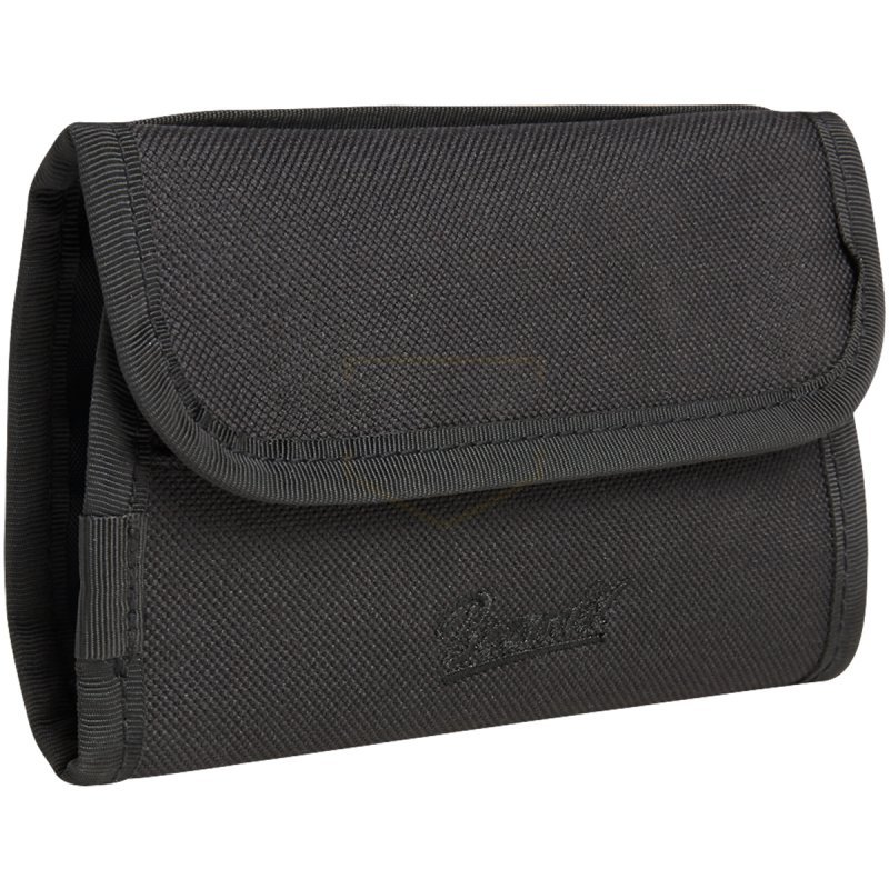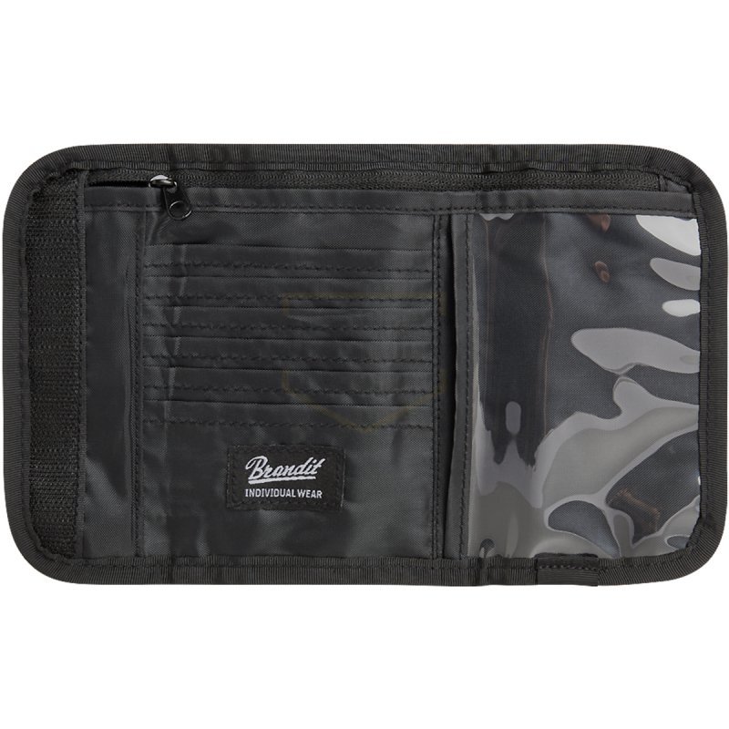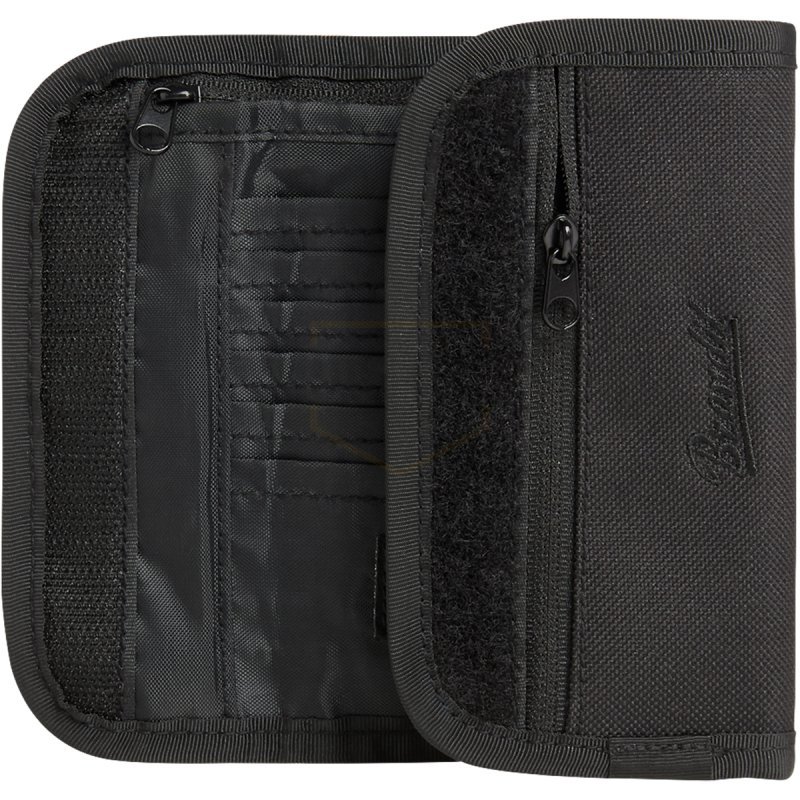 Portefeuille Brandit Two - Noir : Portefeuille en polyester durable avec compartiment à monnaie, emplacements pour cartes, poches pour pièces d'identité et compartiments pour billets de banque. Restez organisé avec style.