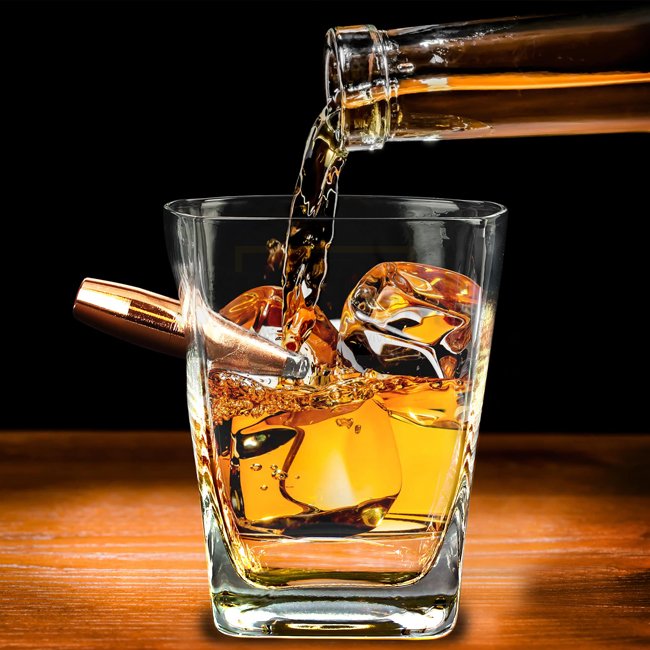 Last Man Standing - le seul verre à whisky avec une fausse balle de calibre 50 sculptée à la main. Cadeau idéal pour les amateurs de bière, les chasseurs et les vétérans.