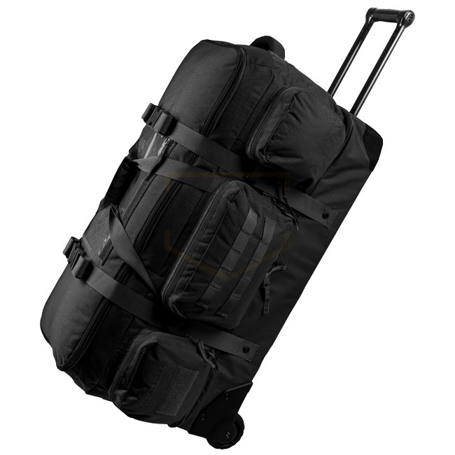 Eberlestock Atlas Duffel - Noir : Sac de voyage robuste et adaptable pour professionnels, aventuriers et utilisateurs tactiques. Compartiment spacieux, 6 poches zippées, fond rigide, fermetures éclair YKK. Fond de coque dure, 6 poches extérieures zippées,