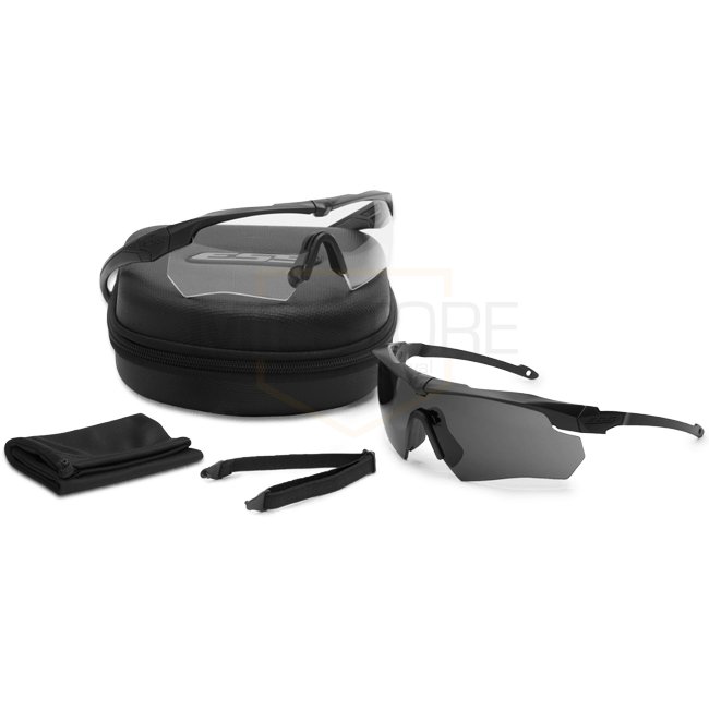 Kit de suppressieur ESS Crossbow 2x Clear & Smoke - Noir : Première monture de lunettes conçue pour être utilisée avec des protections auditives à coupe d'oreille et des dispositifs de communication. Les branches ultra-fines minimisent le bruit, les point