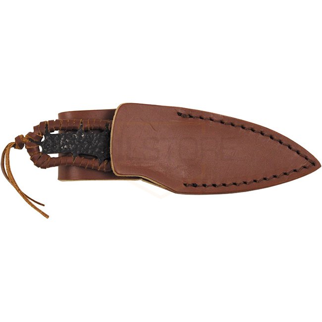 Couteau FoxOutdoor Buffalo I - Marron : Couteau au design ergonomique avec une lame texturée et un manche en cuir. Livré avec une gaine en cuir cousue et un passant de ceinture. Longueur totale d'environ 15,5 cm. Longueur de la lame environ 6 cm. Léger av