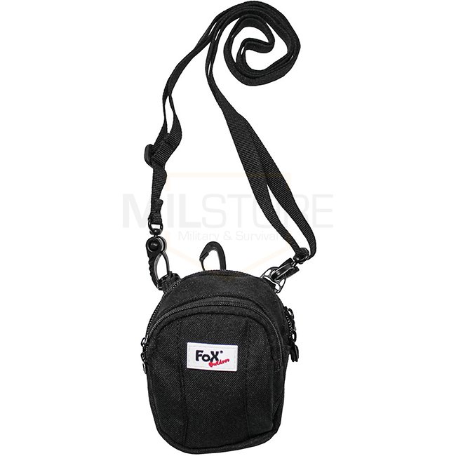 Pochette de caméra FoxOutdoor Basic en noir, avec sangle ajustable, passant de ceinture, mousqueton, plusieurs compartiments, dimensions : 8 x 11 x 8 cm, fabriquée en 100 % polyester.