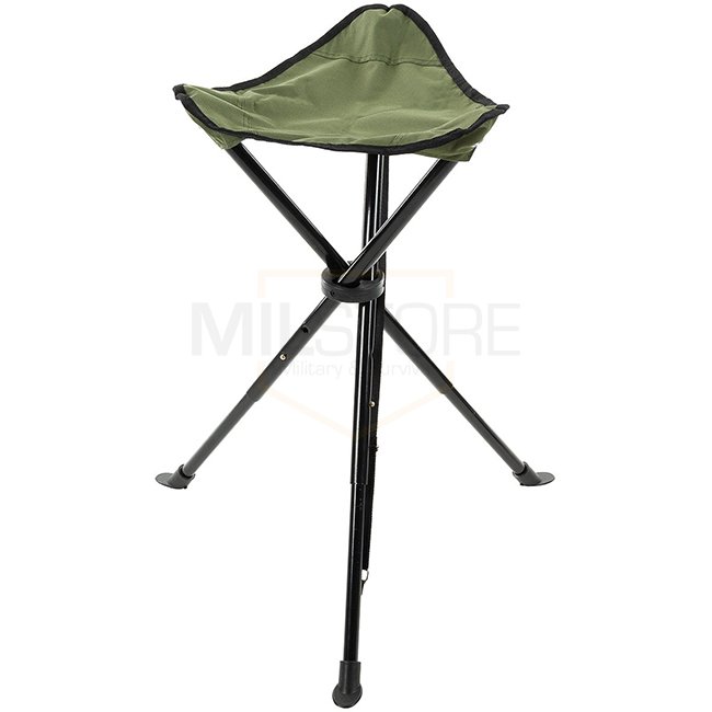 Tabouret pliant FoxOutdoor avec trépied télescopique - Olive : cadre métallique robuste, haute stabilité, surface d'assise triangulaire, verrou de transport et sac inclus. Hauteur d'assise 45-55 cm, taille de l'emballage 60 x 8 x 8 cm, poids 1,00 kg. Maté