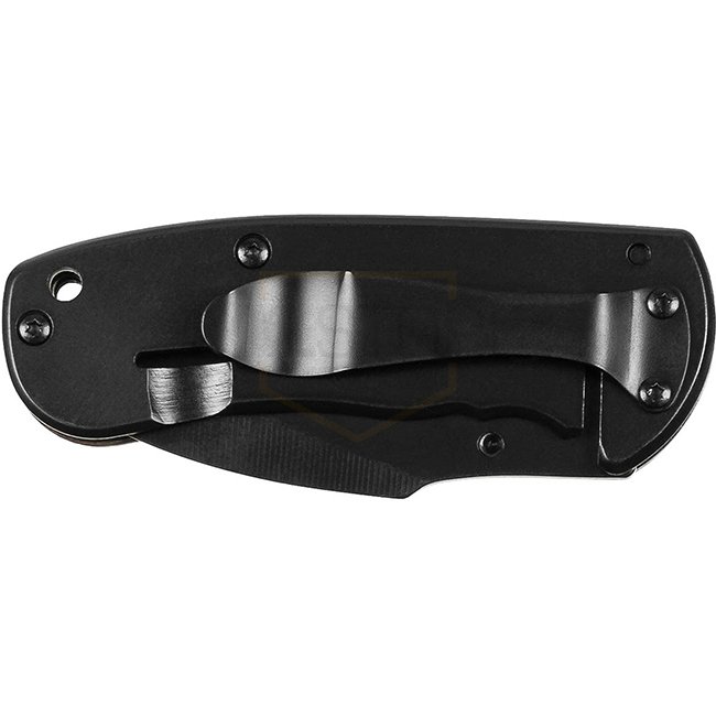 Couteau pliant FoxOutdoor Compact : Lame noire, tranchant lisse, goupille de pouce, verrouillage de liner, manche en métal avec plaque de prise en bois, œillet de fixation, clip de ceinture en métal. Longueur totale : env. 15 cm. Lame : env. 6 cm. Poids :
