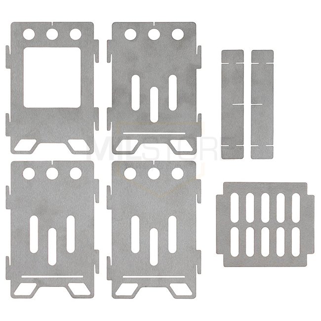 approprié pour des combustibles solides à ranger économisant l'espace, ultra-léger montage simple avec système d'imbrication ventilation optimale pour effet de cheminée fixable au sol par p.ex. sardines 3 panneaux latérals, 1 panneau frontal, 1 plaque de fond, support poêle en 2 parties, sac de transport avec velcro Dim. d'emballage: ca. ca. 20 x 17 x 0,5 cm Dim. assemblées: ca. 19,5 x 15 x 15 cm Poids: ca. 490 g