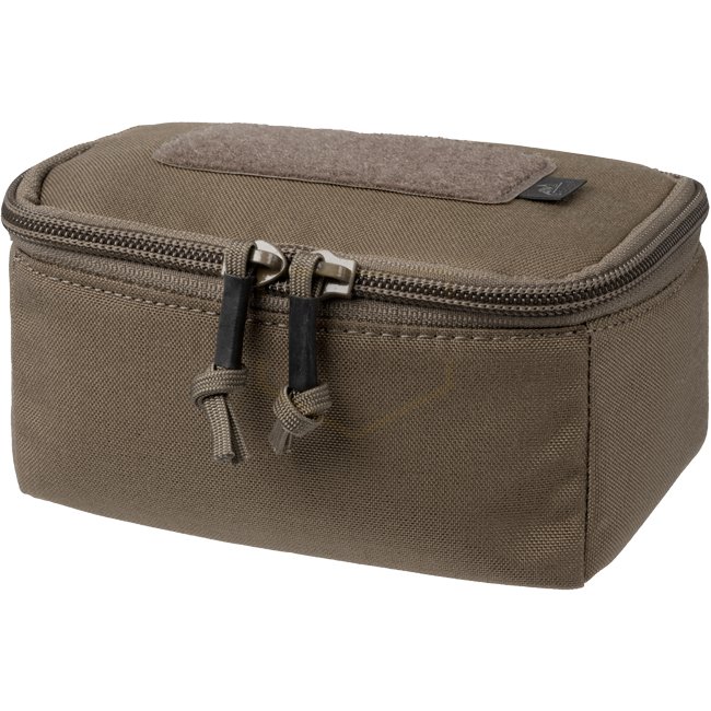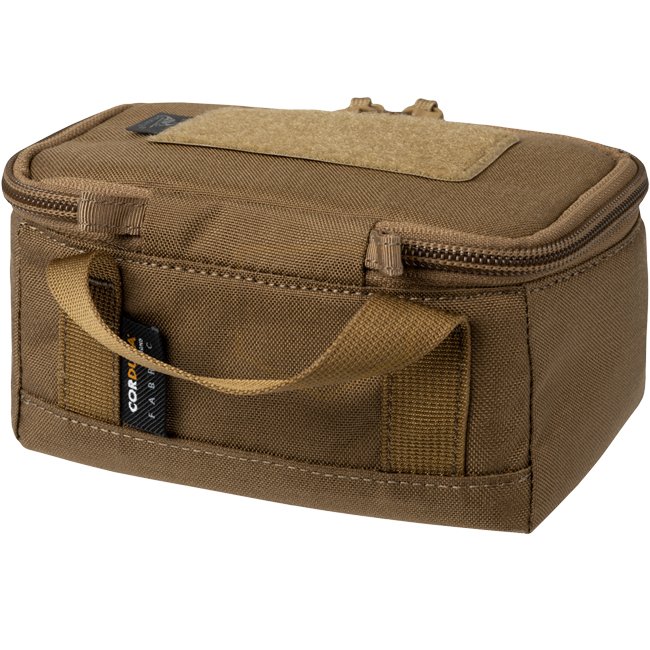 L'Ammo Box est utilisée pour stocker et transporter facilement des munitions d'armes à feu. Grâce à ses petites dimensions, il peut être transporté dans des sacs Rangemaster et Range, l'utilisant ainsi comme protection supplémentaire, ce qui est particulièrement important dans le cas de munitions chargées à la main. L'intérieur est doublé d'un tissu qui absorbe la saleté et est facile à nettoyer et la couche extérieure est en Cordura 500D durable. Il peut contenir trois packs de munitions standard de 9x19mm, mais vous pouvez également transporter des munitions à l'intérieur.