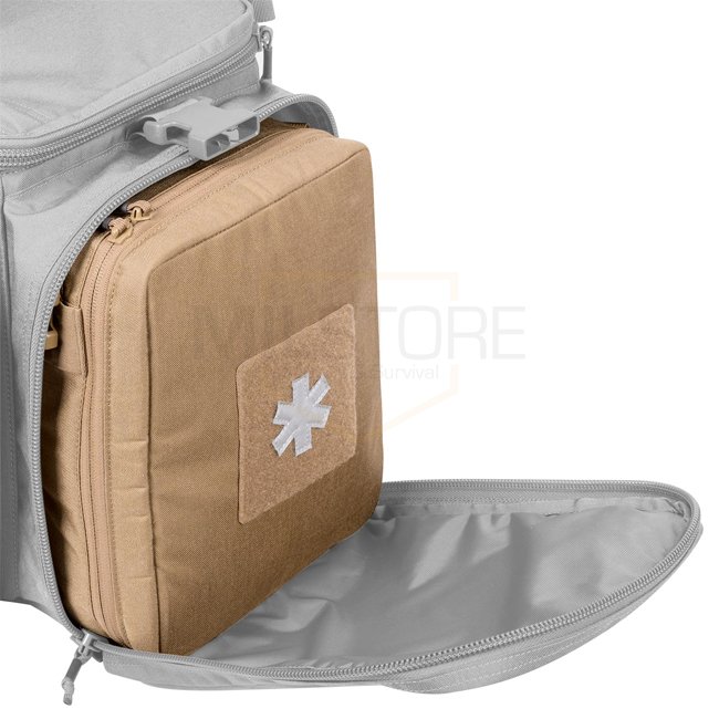 L'automotive Med Kit a été conçu comme la trousse de premiers soins principale pour véhicules. Sa forme compacte et plate lui permet de s'insérer sous les sièges, dans les portes latérales ou les poches de siège, tandis que l'absence d'arêtes vives empêche les accrocs. La partie avant du kit médical comporte un large panneau de velcro à boucle pour un marquage individuel, avec un panneau réfléchissant pour une identification rapide. Les poignées sont également marquées d'un ruban réfléchissant pour faciliter leur recherche avec un minimum de lumière. Grâce à une bandoulière détachable, le kit médical peut être porté comme un sac bandoulière.