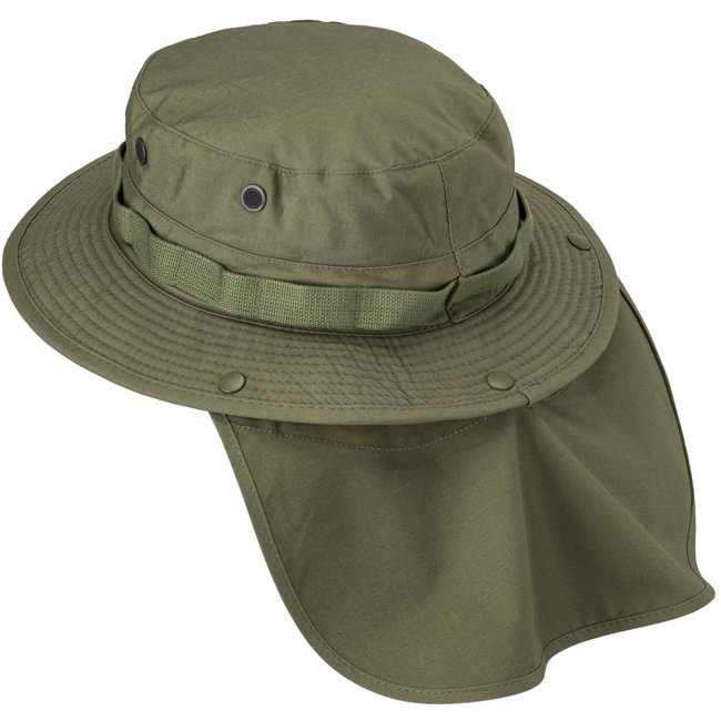 Chapeau militaire traditionnel à large bord, parfait pour les opérations en forêt et dans le désert. Offre une protection contre le soleil et la pluie, couvre-nuque détachable.