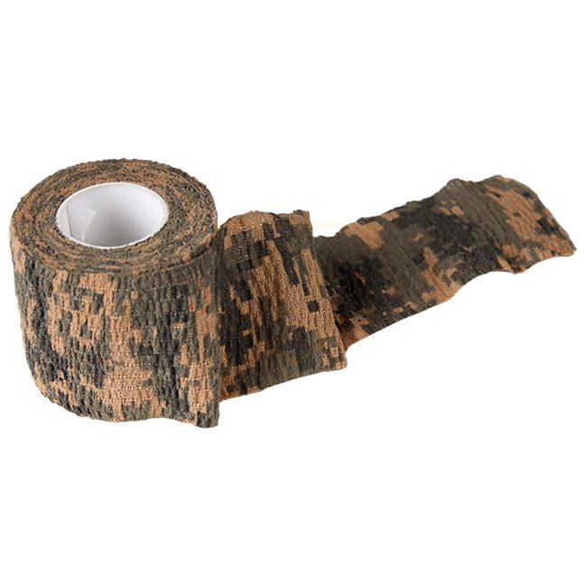 Ruban de coton flexible, conçu pour le camouflage d'armes et de matériel. Le matériau n'adhère qu'à lui-même, de sorte qu'il ne laisse pas de traces sur les objets masqués. Largeur: 5 cm (2 inch) Longueur: 270 cm (106 inch)