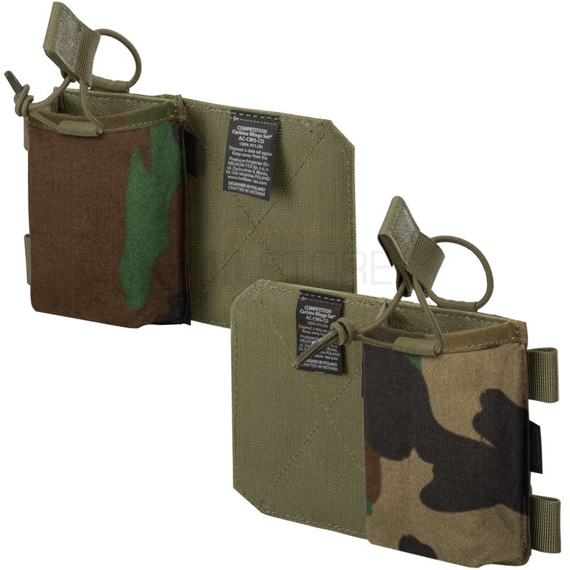 Ensemble Ailes Carabine de Compétition Helikon-Tex - Camouflage US Woodland. Conçu pour augmenter la capacité du Rig MultiGun à transporter des munitions supplémentaires avec stabilité et un intérieur anti-dérapant pour chargeur standard AR/AK. Fabriqué e
