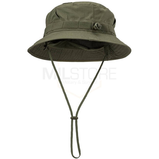Chapeau militaire de style britannique/australien avec bord ajustable et tunnels en mesh cachés pour la circulation de l'air. Idéal pour les opérations en forêt, offrant un camouflage efficace de la tête. Fabriqué en 100% coton, pesant 113g. Doté de tunne