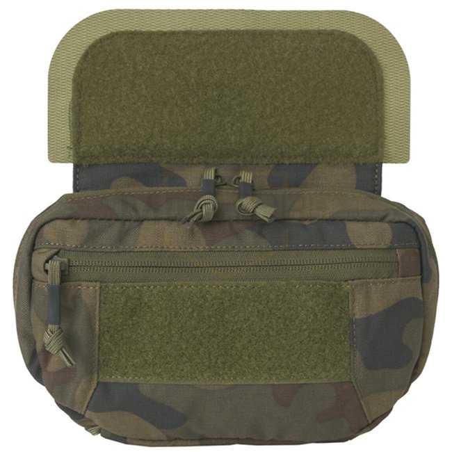 Le Dangler Guardian Helikon-Tex - PL Woodland est un accessoire polyvalent pour le gilet porte-plaque Guardian, offrant un espace de rangement supplémentaire pour les accessoires essentiels. Facilement attachable avec un système à trois points, cette poch