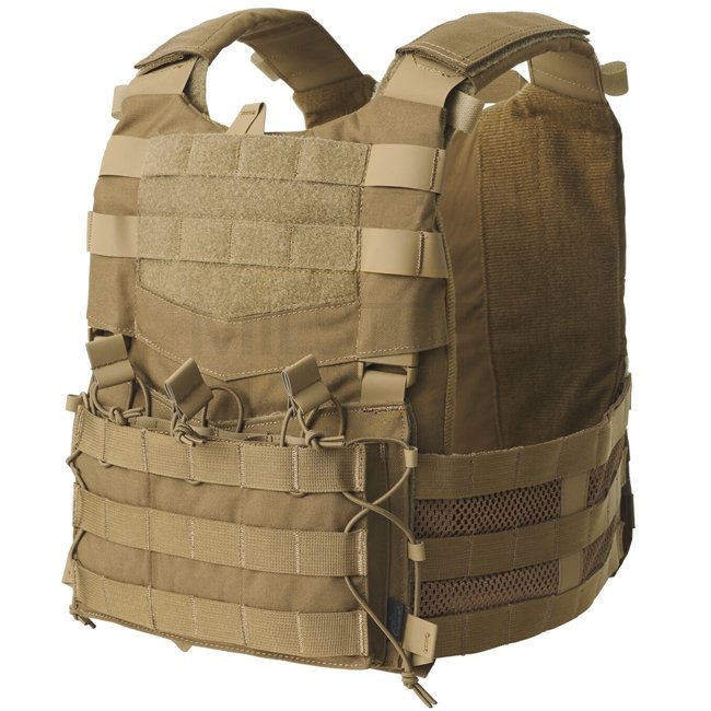L'ensemble militaire Helikon-Tex Guardian en Coyote est un gilet tactique moderne conçu pour porter des plaques balistiques. Il offre une protection contre les balles, les éclats et plus encore, avec un tissu extensible pour plus de confort et de fonction