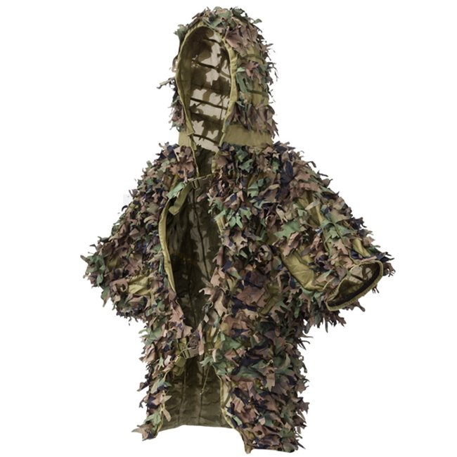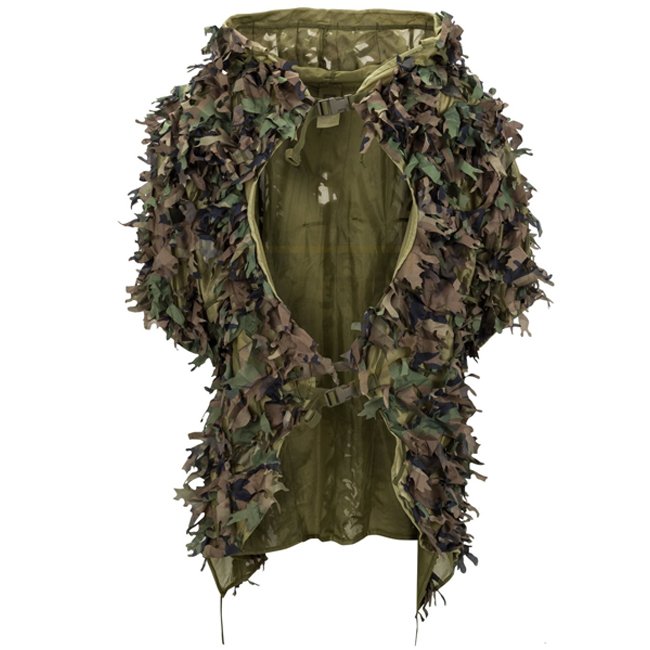 Ensemble Ghillie Leaf Helikon-Tex - US Woodland : Système de camouflage avancé ultraléger en maille légère avec des feuilles artificielles cousues pour une discrétion supérieure. Idéal pour les missions de reconnaissance.