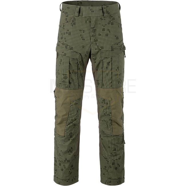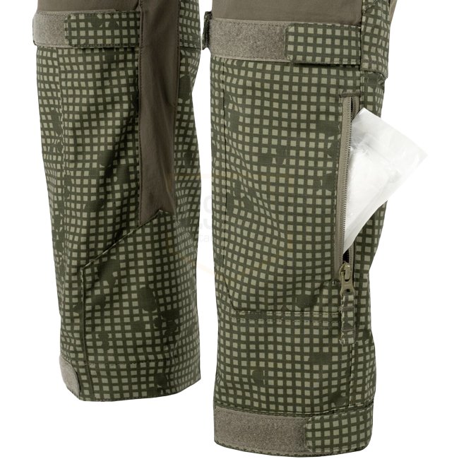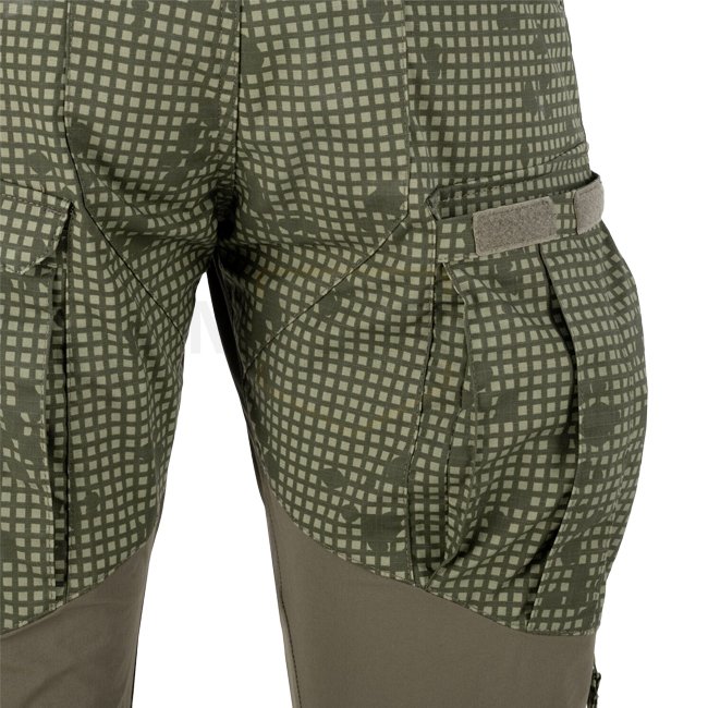 Des inserts en matériau Versastrech ont été utilisés dans les zones clés (taille, entrejambe et arrière des genoux). Il sèche rapidement et est hautement respirant. La zone des genoux est renforcée avec du tissu Cordura 500D avec des fentes pour inserts de protection. Grâce à des cordons supplémentaires situés sous le genou et en bas de jambe, le pantalon peut être facilement ajusté à la jambe.