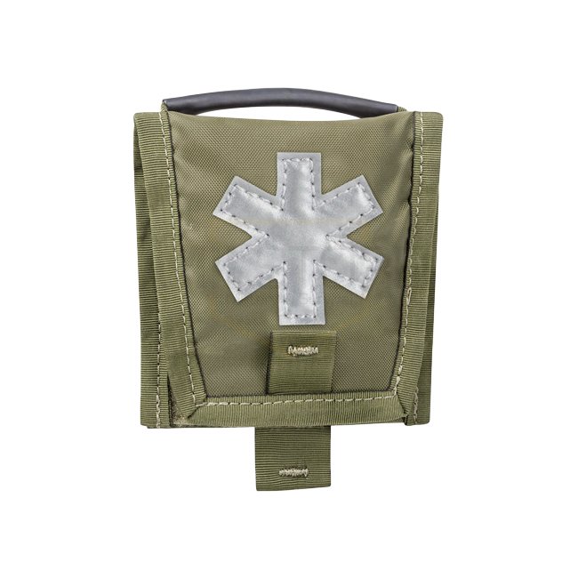 Helikon-Tex Micro Med Kit - Vert Adaptatif : Insert médical le plus petit idéal pour contenir le strict nécessaire comme des gants d'examen et des pansements. Croix de paramédic réfléchissante pour une identification facile, poignée couverte de caoutchouc