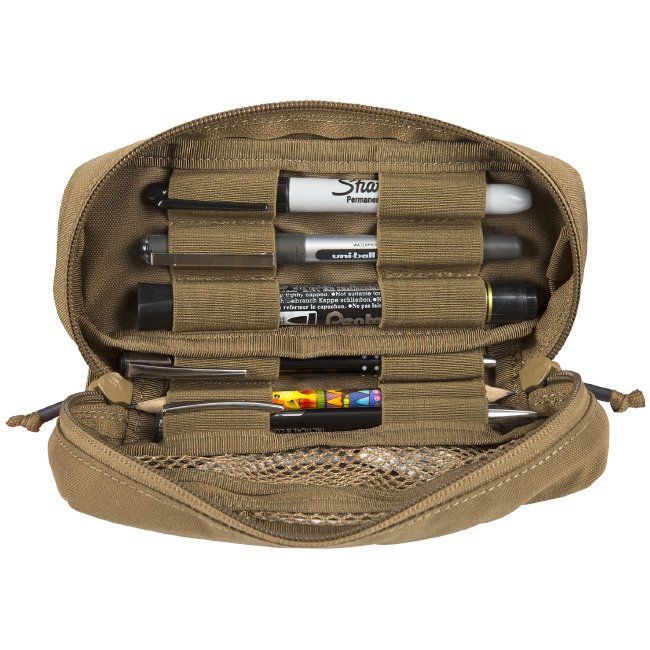 Troussse à crayons Helikon-Tex - Noire : Un insert polyvalent avec des boucles élastiques pour les instruments d'écriture et une poche en maille zippée. Fermeture éclair YKK.