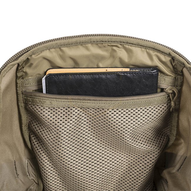 Sac à dos Helikon-Tex Raider en noir, fabriqué en tissu Cordura avec un système de port confortable, un panneau d'identification Velcro, des bretelles anatomiques, un système MOLLE/PALS, et des fermetures éclair YKK. Comprend un compartiment principal dou