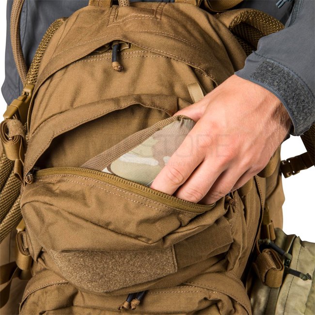 Sac à dos Helikon-Tex Ratel Mk2 - Coyote : capacité de 25l, tissu Cordura, panneau d'identification Velcro, ceinture de hanche détachable, poches utilitaires externes, attache pour poche d'hydratation, MOLLE/PALS, fermetures éclair YKK, boucles Woojin, di