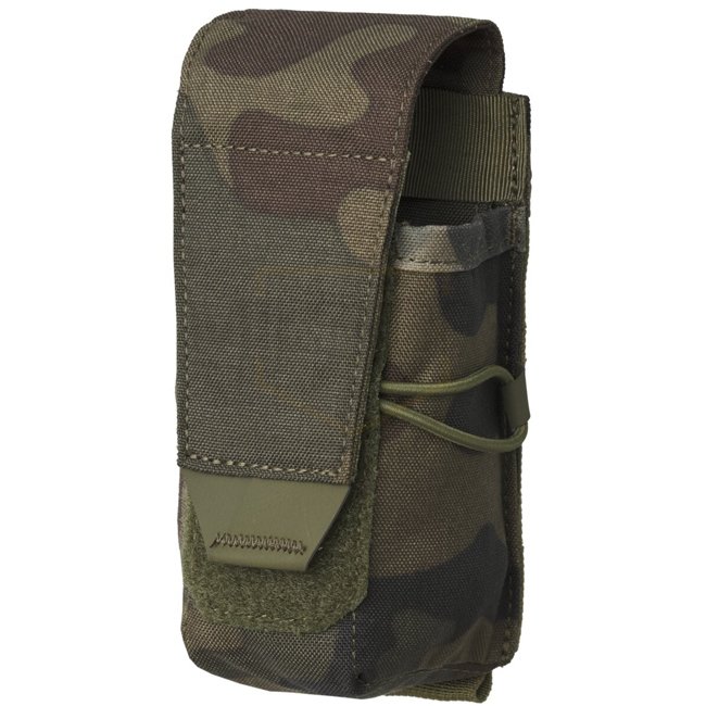 Cette pochette est conçue pour transporter des grenades en toute sécurité. Le contenu de la pochette tactique est sécurisé par un rabat à scratch, équipé d'une poignée antidérapante. Le rabat peut être ajusté et fixé à une hauteur adaptée aux besoins individuels. La pochette militaire pour grenades fumigènes est fixée à l'aide d'un système de sangles modulaires. Une protection supplémentaire est assurée par un matériau durable et un cordon de serrage avec bouchon.