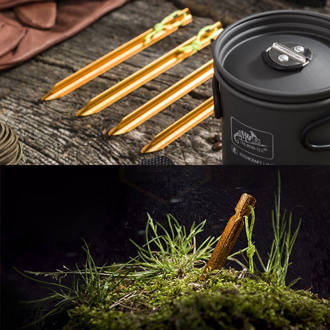 Les piquets de bâche sont un ensemble de quatre piquets de bâche en aluminium légers. En raison de leur matériau, ils sont 100% résistants à la rouille. Un profil spécial augmente leur durabilité et améliore la stabilité lorsqu'ils sont enfoncés dans le sol. Chaque piquet ne pèse que 12 grammes et possède une ficelle brillante pour un tirage facile du sol. Les chaînes vous permettent également de relier les enjeux les uns aux autres, vous éviterez ainsi de les perdre pendant le voyage.