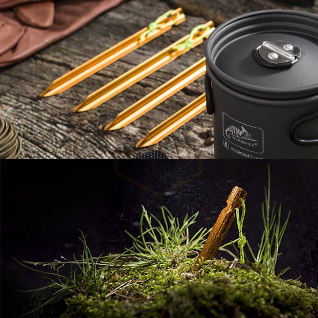 Les piquets de tarp Helikon-Tex de couleur orange sont un ensemble de 4 piquets légers en aluminium qui sont résistants à la rouille, durables et stables lorsqu'ils sont enfoncés dans le sol. Chaque piquet ne pèse que 12g, possède une corde lumineuse pour