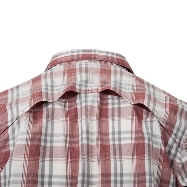 Restez élégant et fonctionnel avec la chemise Helikon-Tex Trip en rouge à carreaux - XS. Comprend deux boucles pour lunettes de soleil, des poches poitrine zippées, une ventilation en maille, de petites poches latérales, des fermetures éclair YKK, et un c