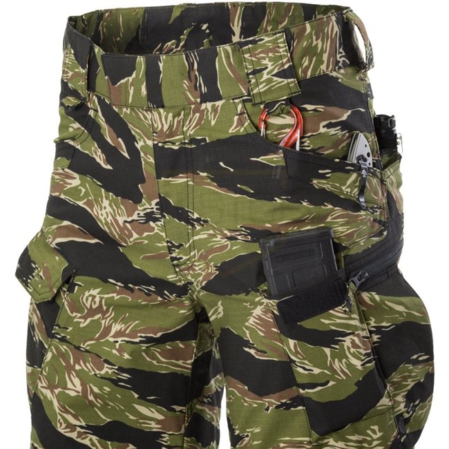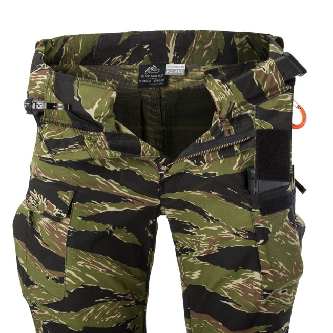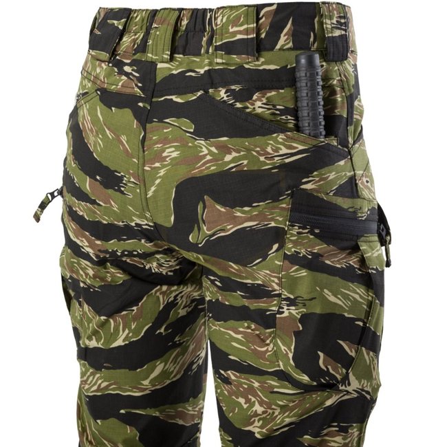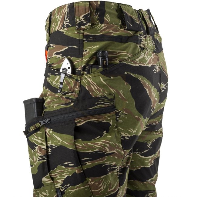 Pantalons tactiques urbains Helikon-Tex - Ripstop en polycoton extensible - Rayures tigre - S - Long. Taille élastique avec fermeture velcro, passants de ceinture de 50 mm de large, poches avant renforcées, poches cargo, poches pour smartphone/revue AR, c