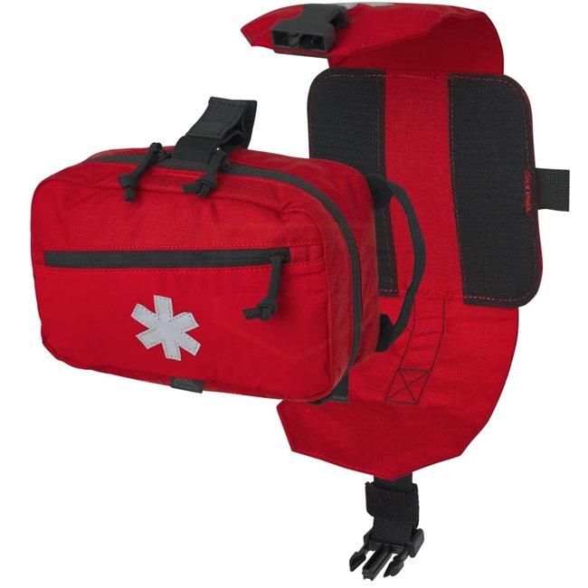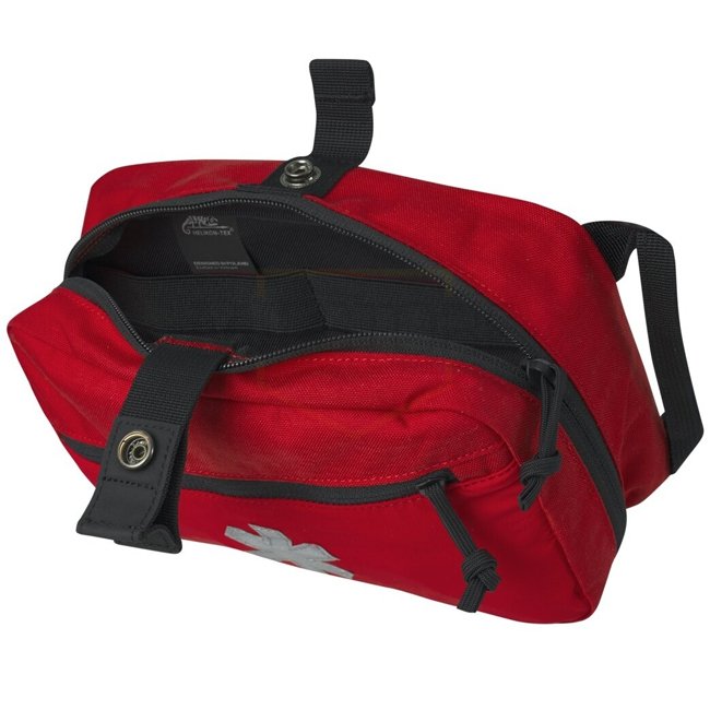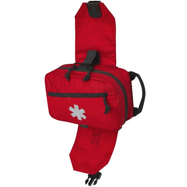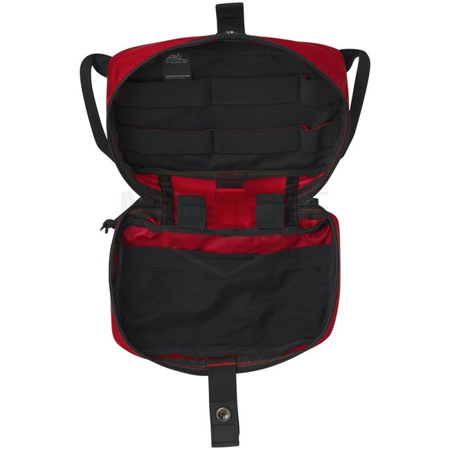 Trousse médicale Helikon-Tex pour véhicule - Rouge : Trousse de premiers secours pour conducteurs conscients, avec fixation rapide sur l'appui-tête du siège, accès facile, et poches spéciales pour gants et équipement de sécurité. Compacte et légère, dimen