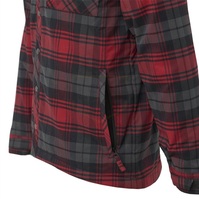 Une chemise à carreaux classique avec une touche d'originalité. Il est composé d'une matière synthétique à séchage rapide et d'une doublure légère de 60 g/m2. Cela le rend idéal pour les situations où une veste d'hiver est trop lourde, mais un coupe-vent ou un anorak ne suffit pas. La chemise a un total de sept poches. À l'intérieur se trouvent deux poches spacieuses pour les chapeaux et les gants. À l'extérieur, il y a deux poches poitrine, deux poches pour les mains et une poche plate pour les petits objets. Les épaules renforcées protègent la chemise de l'abrasion et de l'humidité. Le bouton pression est pratique et souligne le look intemporel de la chemise.