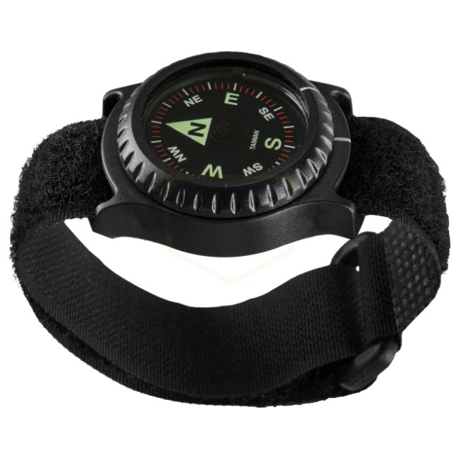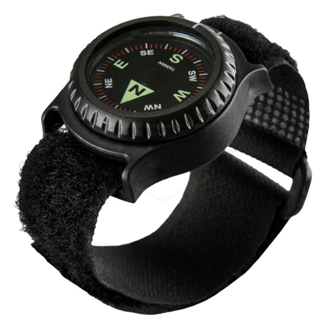 Compas de poignet Helikon-Tex T25 - Noir : Compas de poignet pour une orientation rapide en terrain avec conception étanche et bandeau en velcro. Anneau rotatif et rempli de liquide pour fiabilité.