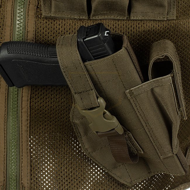 Gilet Crossdraw Invader Gear Mk.II en vert ranger, taille unique, adapté pour 4x munitions 5.56 & 4x chargeurs de pistolet / 1x pistolet, poids 1100g.